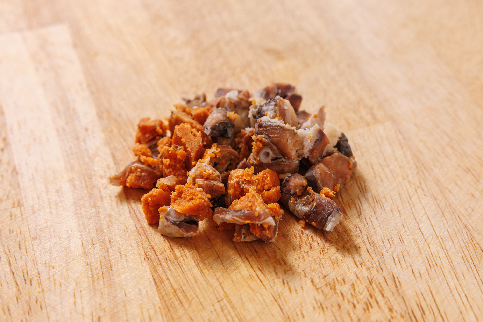 鮒ずしを包丁またはキッチンばさみで粗みじんにし、(1)とあわせて混ぜる。