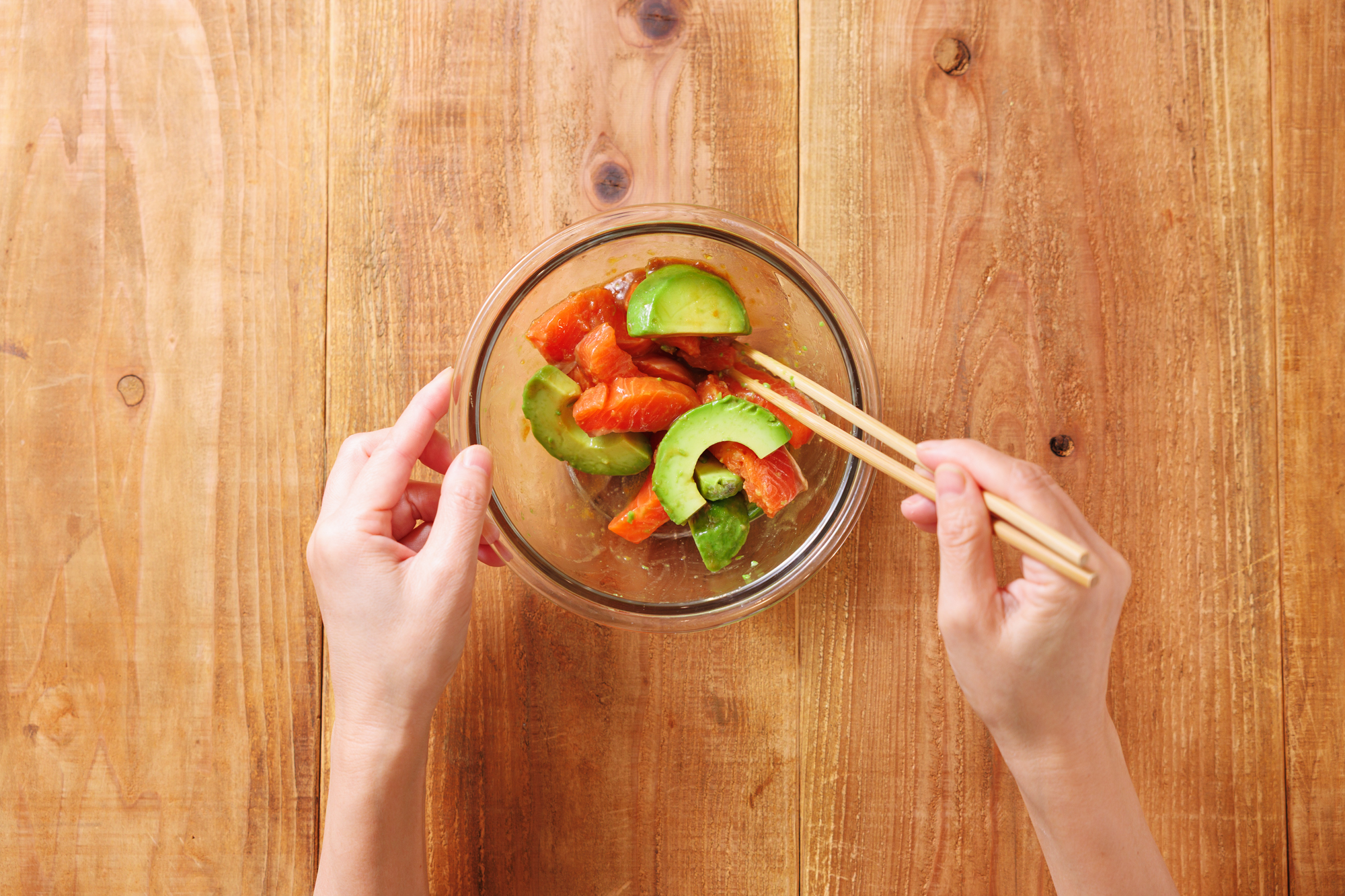 塩麹の酵素がたんぱく質を分解し、消化吸収をスムーズにしてくれます。さらに、サーモンとアボカドの栄養が腸活・代謝・免疫力をアップ!栄養満点のひと皿です。