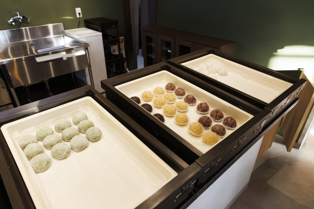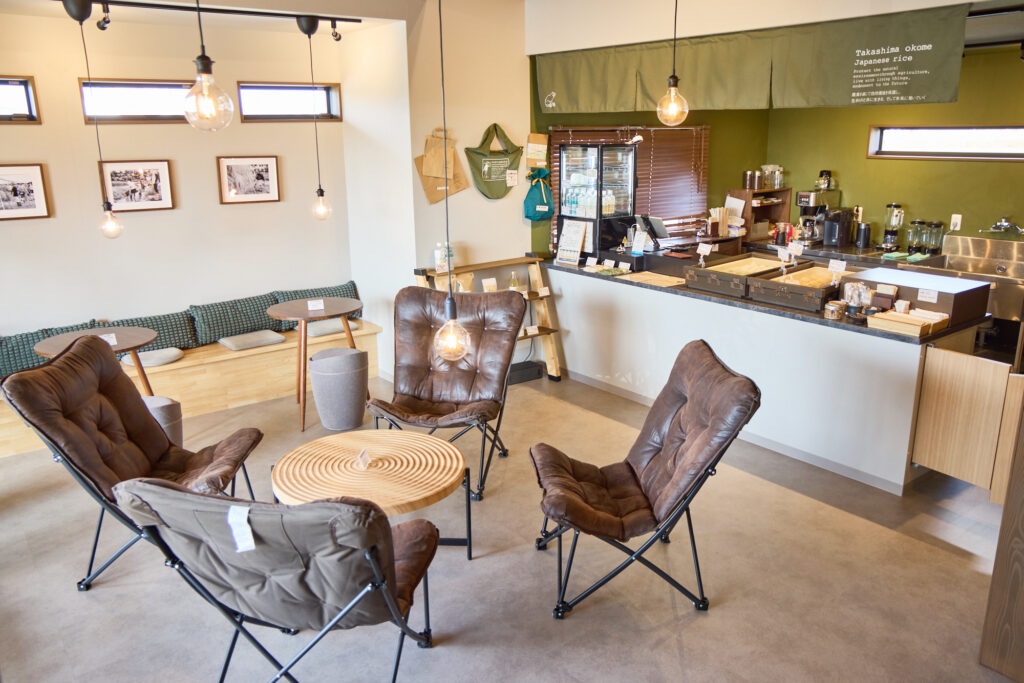 百姓菓子処 藤栄+Caféでは、おはぎや大福、おにぎりや甘酒など素材の味を生かした品がずらり。どれも味わってみたくなる品ばかりで、「もうひとつ」とついつい手がのびてしまいそう。腹持ちも良く、午後のひと息はもちろん、びわ湖一周を楽しむ〈ビワイチ〉の途中で、サイクリストが休憩に立ち寄るのも納得。さらに、有機米と水をセットにした販売もあり、自宅はもちろん、おでかけ先でも、高島のおいしいごはんを楽しめるんです。